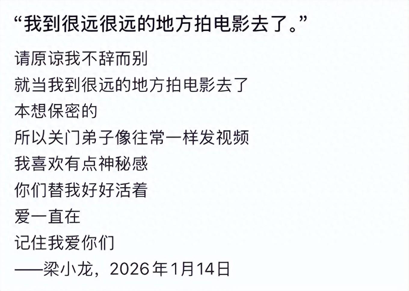而且大家還注意到從1月14日至今,梁小龍的社交賬號一直在更新,怎麼突然間就說人不在了呢。