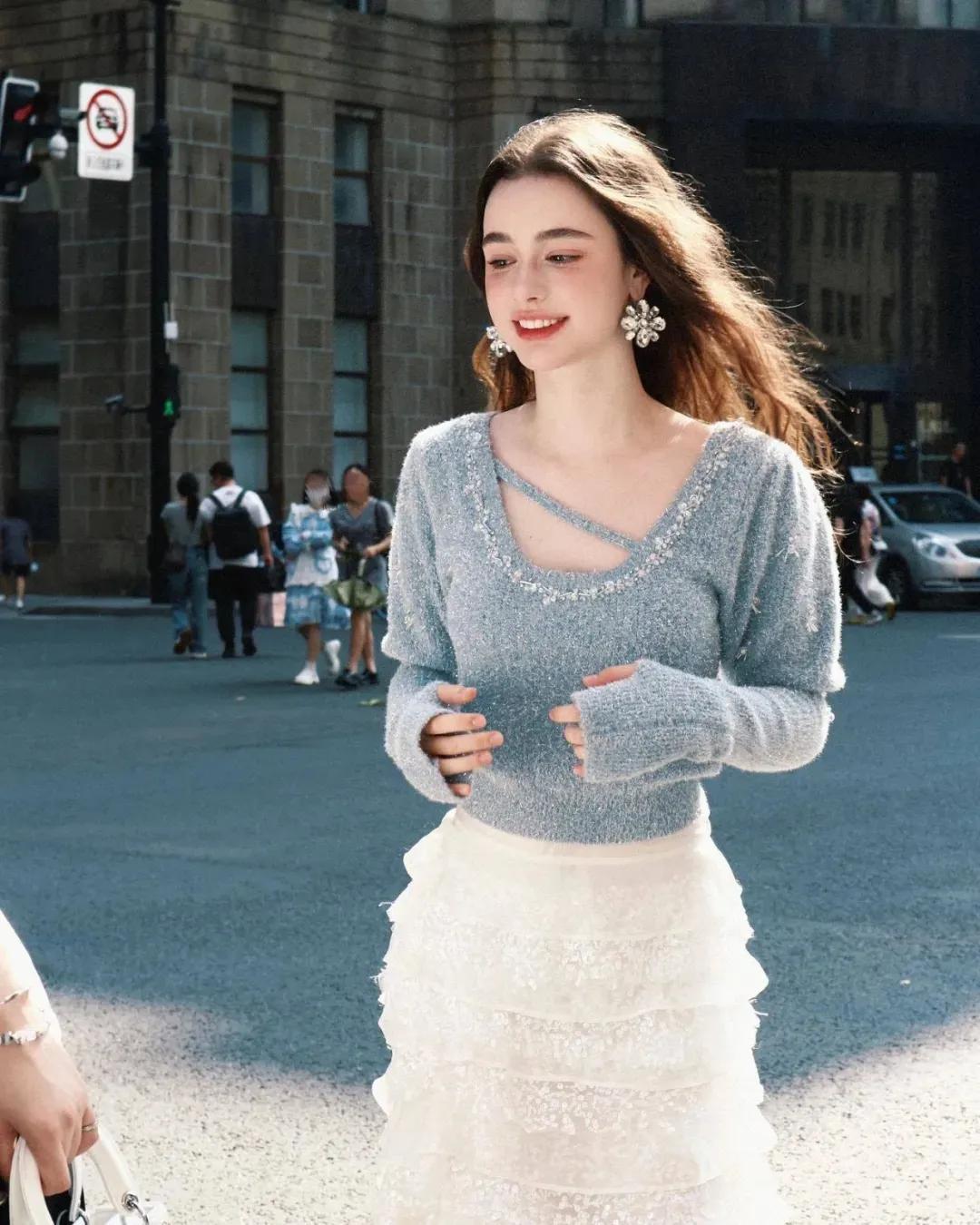 皮膚白皙、五官立體,既擁有西方女性深邃的眼眸和頜線,又擁有東方女性的柔美氣質。