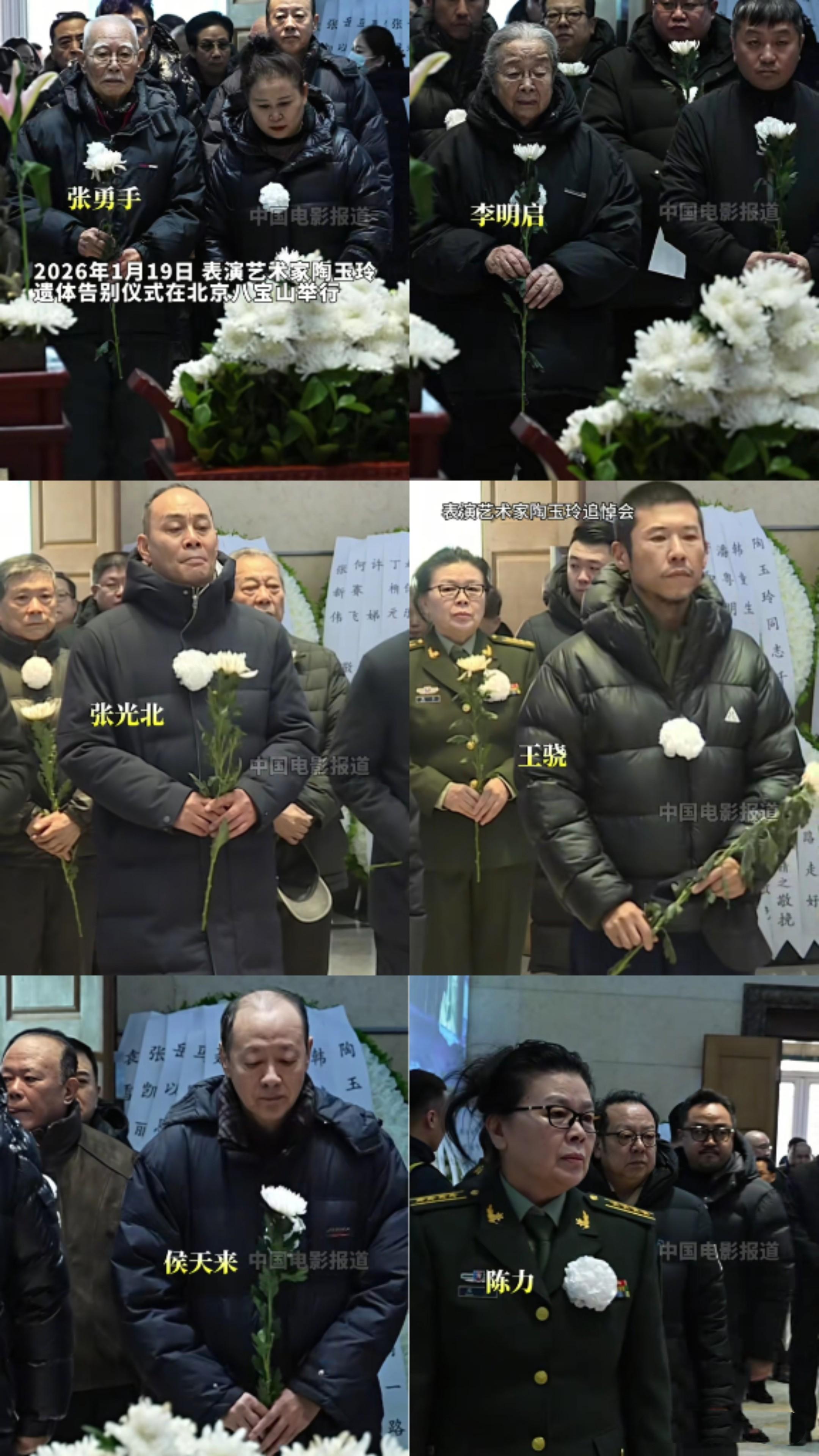 告別儀式開始後,衆人陸續進入靈堂,可以看到張勇手、馮恩鶴、侯天來、戚慧、王爲念、王驍、吳若甫、張光北、黃宏、鬱鈞劍、侯勇、藍羽等演藝界人士都來到了現場,送陶玉玲最後一程。