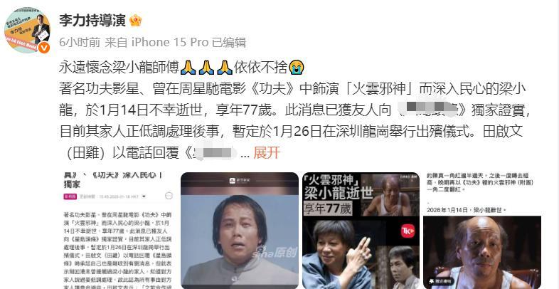 很快,曾經擔任過樑小龍經紀人的田啓文也證實了這一消息。