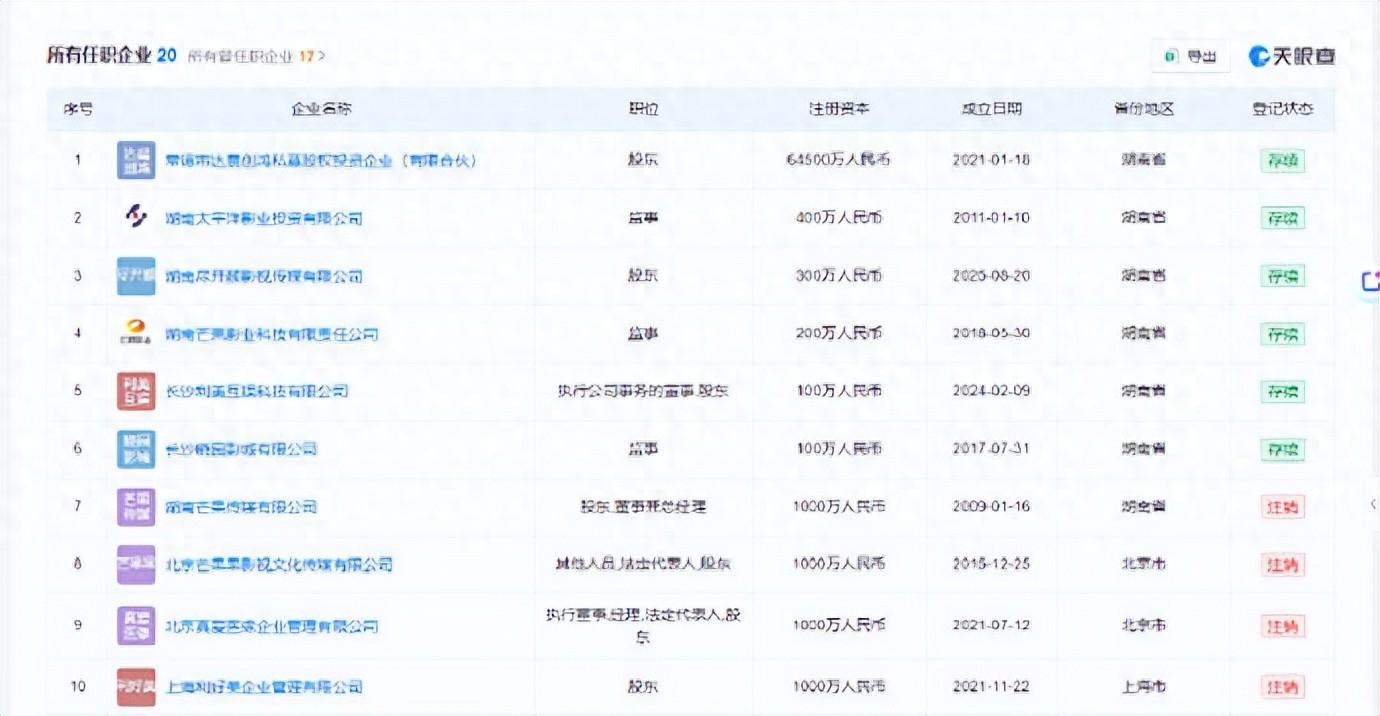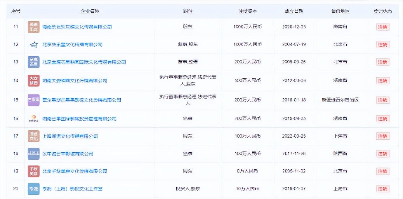現在的她不僅賬號被禁止關注,網友還發現曾經她名下關聯20家企業,如今14家已經註銷,只有6家爲存續狀態。