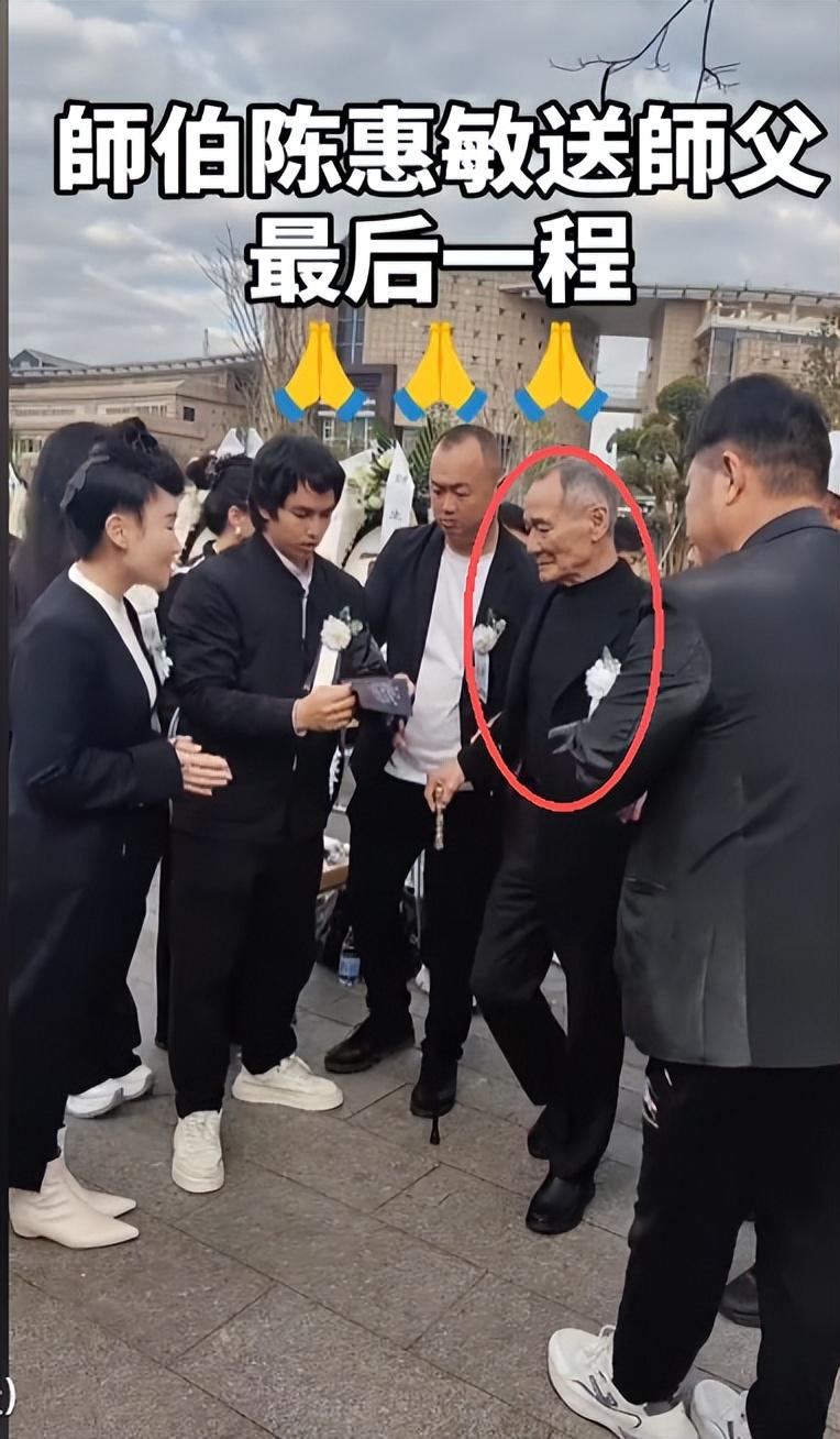 其中陳惠敏今年已經82歲了,他的腿腳已經不利索,但他即使拄着柺杖也要來送梁小龍最後一程。