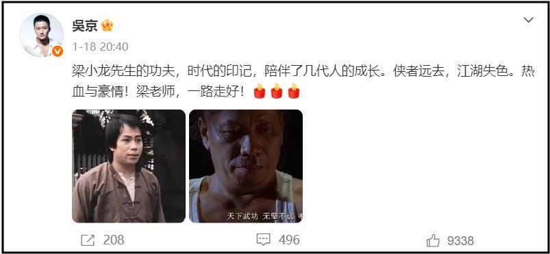 而且在梁小龍去世後,香港演藝界更是衆星發文悼念,就連曾在香港演藝界闖蕩過的吳京都發文悼念了。