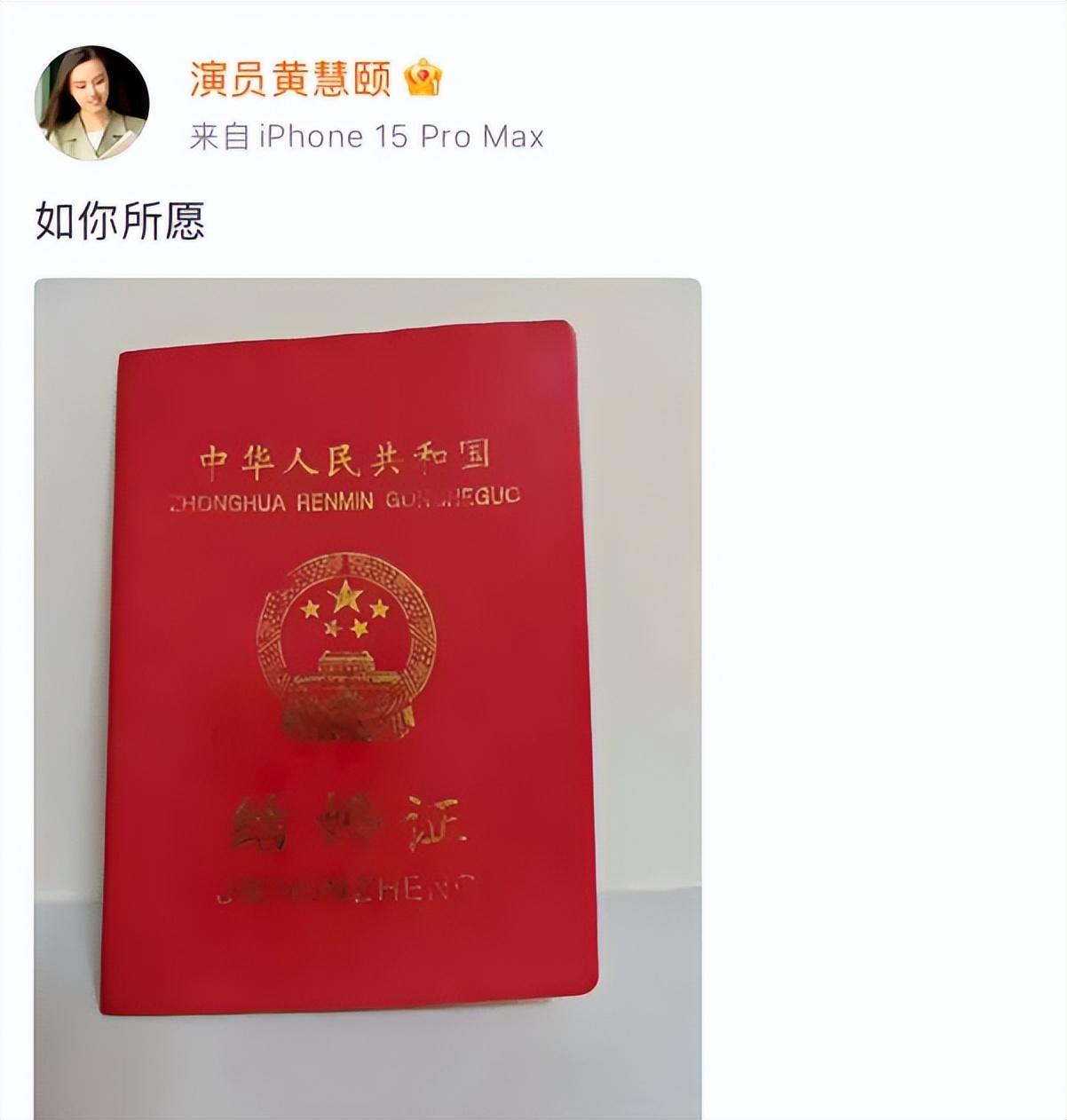 直到黃慧頤曬出結婚證封面,用“如你所願”四個字將最後的窗戶紙捅破,這場拉鋸戰纔算是有了實錘。