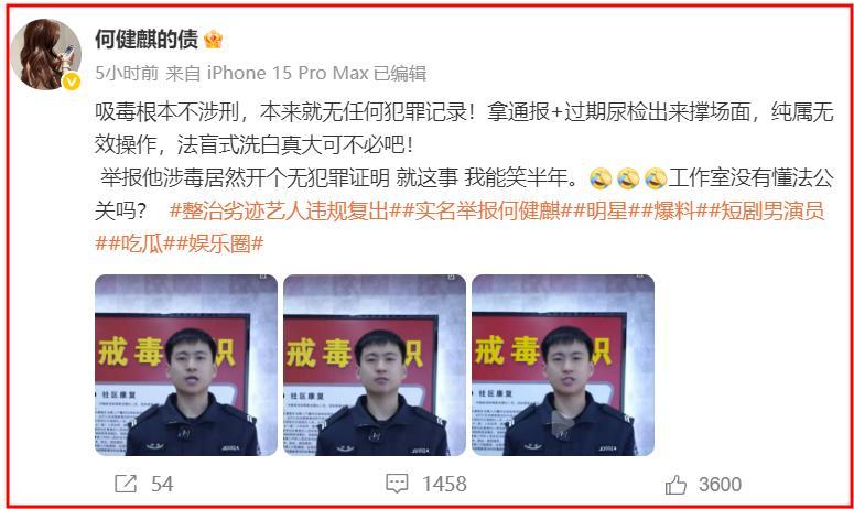隨後她談及了何健麒做檢測的事情,她直言“想拿近期沒涉毒來證明以前也沒涉毒,實在是讓人覺得可笑。這不過是糊弄粉絲、把大家當猴耍的拙劣手段,全程避重就輕,根本毫無意義。”