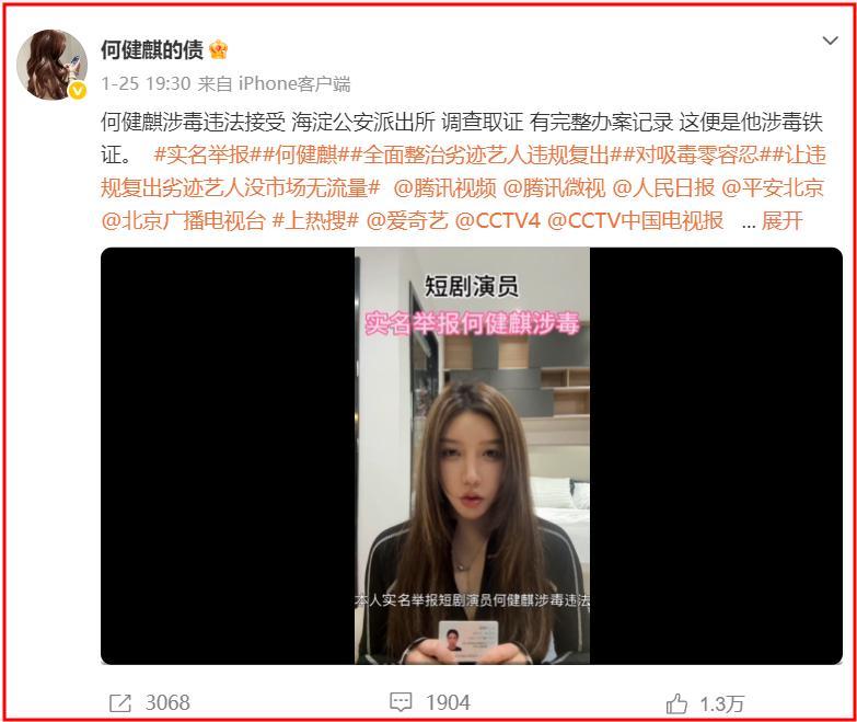 眼看輿論並未就此消散,1月26日,何健麒發文稱已經做了尿檢發檢。