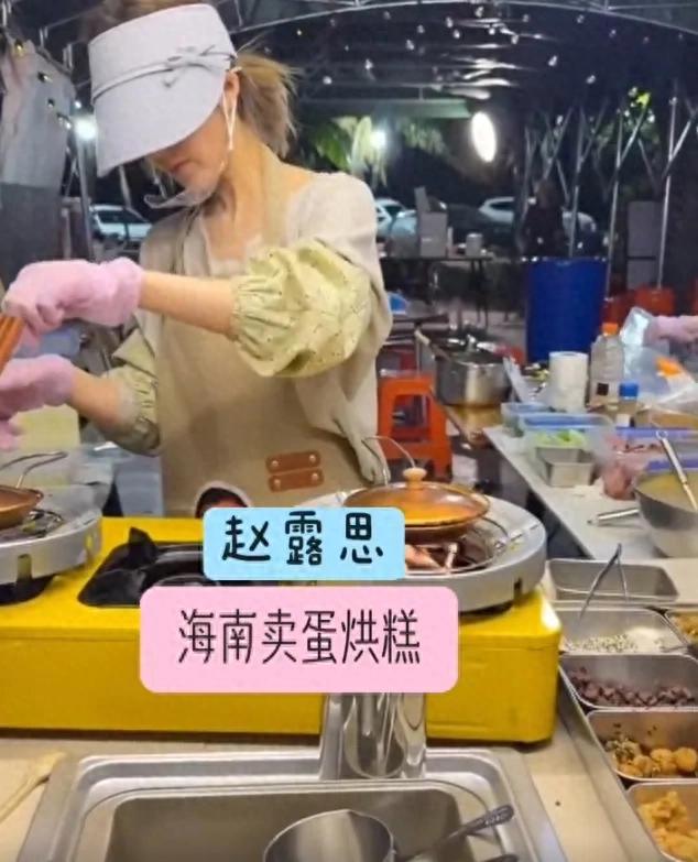 畫面裏的趙露思完全沒偶像包袱,純素顏出鏡,頭戴藍色遮陽帽,套着袖套和手套,繫着普通圍裙,完美融入當地夜市,沒有清場、沒有保鏢,就紮在煙火氣裏埋頭做蛋烘糕。
