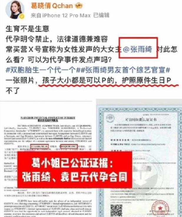 此外,葛曉倩還曬出了疑似是張雨綺代孕的合同。