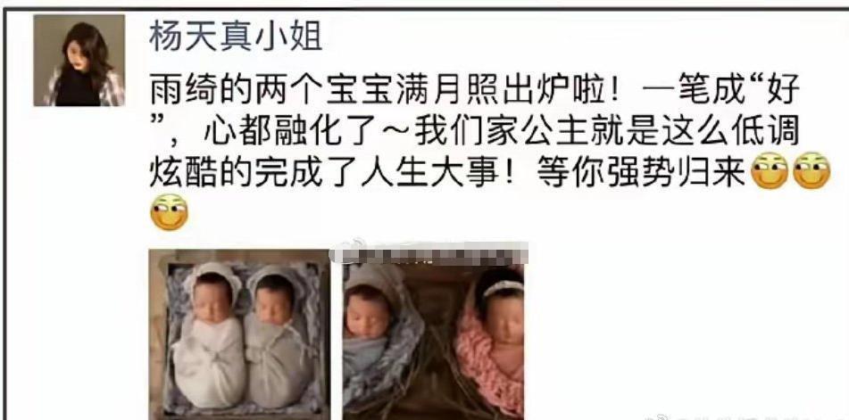 對於張雨綺的代孕問題,2024年,葛曉倩就曾舉報過,而楊天真用一張她拍攝的張雨綺孕肚照,讓張雨綺度過了危機。