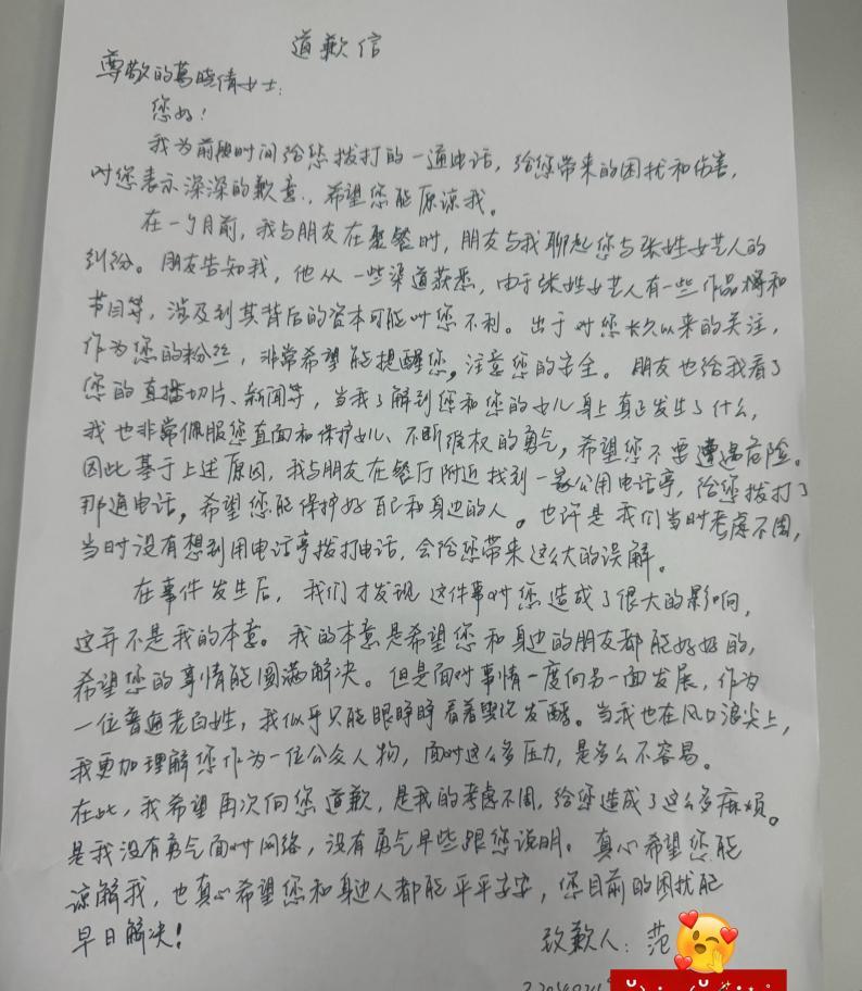 在道歉信中,律師說關於葛曉倩家人的信息和住址都是蒙的。