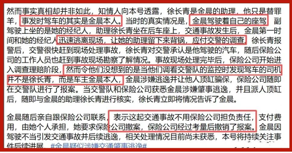 沒逃逸!沒騙保!警方通報,金晨回應,爆料者被打臉,這下慘了!