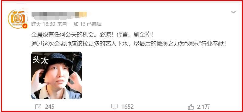 當金晨疑似肇事逃逸事件發酵到這一步,爆料的狗仔更是怒踩金晨,發文“金晨沒有任何公關的機會。必涼!代言、劇全掉!”