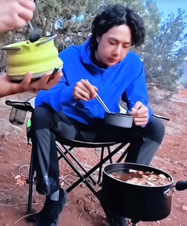 他揹着碩大的登山包,和團隊在野外席地而睡,喫在山林。
