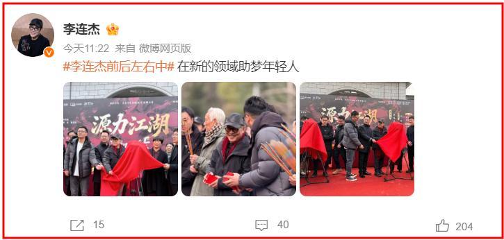 在開機儀式結束後,李連杰還專門發佈了一條有關《源力江湖》的開機儀式的動態,他在文案中寫道:在新的領域助夢年輕人。