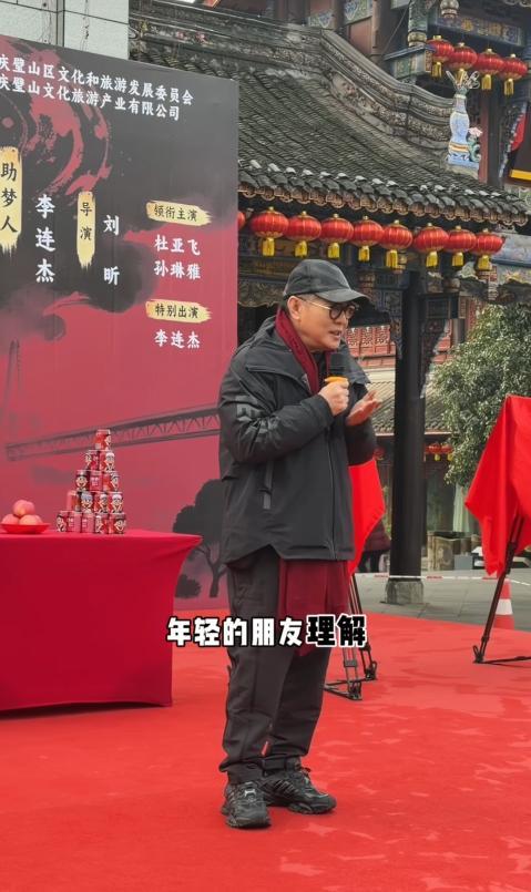 對於此,李連杰很重視,他穿着黑色羽絨服,戴着紅色圍巾、黑色鴨舌帽出席了開機儀式。