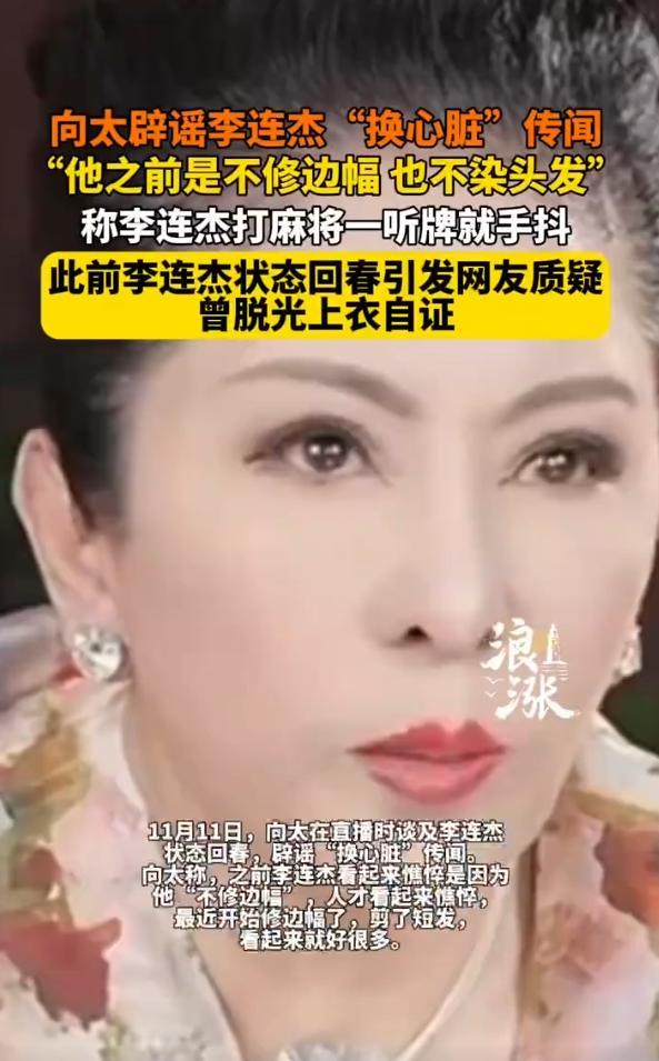 在李連杰親自闢謠之後,他的老朋友向太也幫他闢謠了。