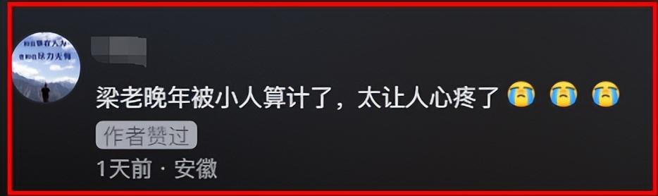 翻看評論區還可以發現,有網友留言“梁老晚年被小人算計了,太讓人心疼了”,有網友留言“支持師孃維權,打倒這麼壞的人”。