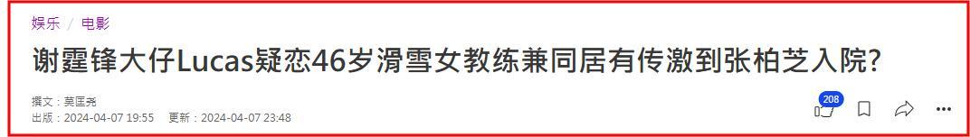 爆料博主還稱張柏芝並不反對兒子談戀愛,但聽到兒子的女朋友已經46歲了,比她年齡還大,她一時難以接受,以至於氣到住院休養。