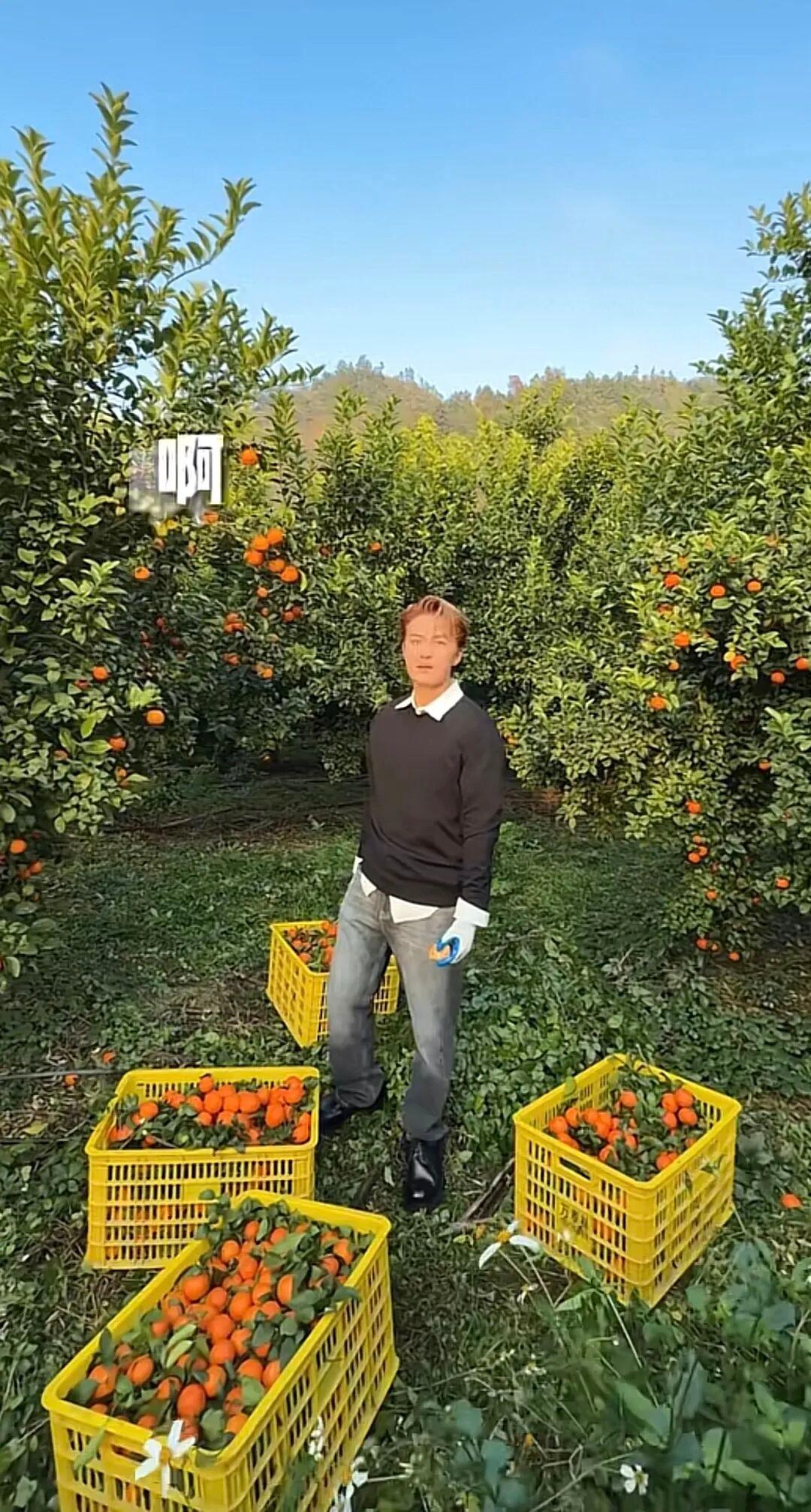 在當地阿姨的接連催促聲中,他手忙腳亂,一邊拿剪刀咔嚓咔嚓剪柑橘,一邊趁人不備狂喫果子,汁水滿溢間,他的表情像極了被壓榨的打工仔,被吆喝完還沒工資那種……