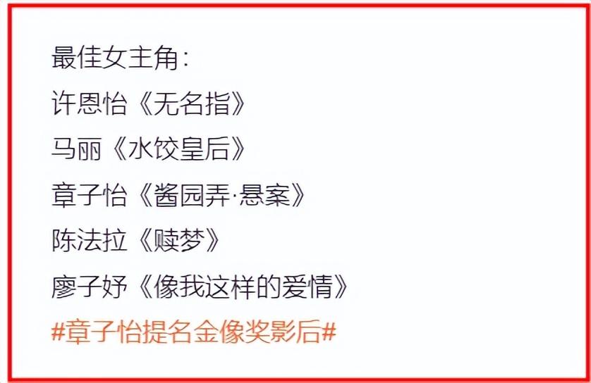 看着名單,網友發現章子怡迎來喜訊,大家紛紛直言這個提名公正、客觀,實至名歸。