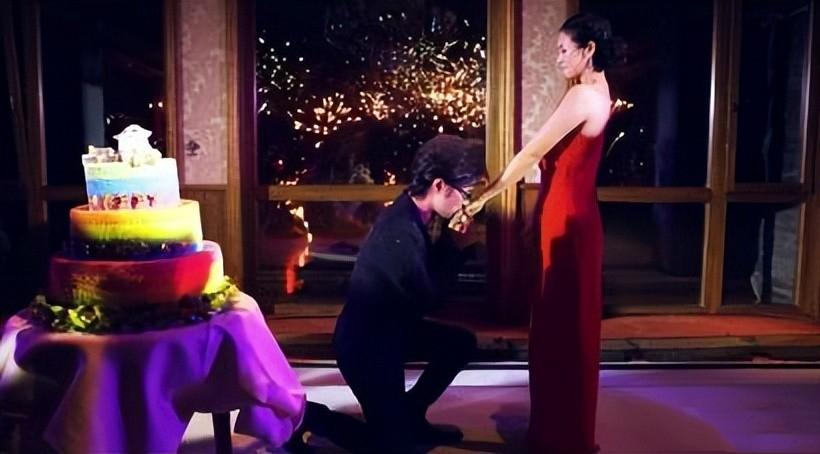 他用無人機載來了鑽戒,單膝跪地向章子怡表白,求婚。