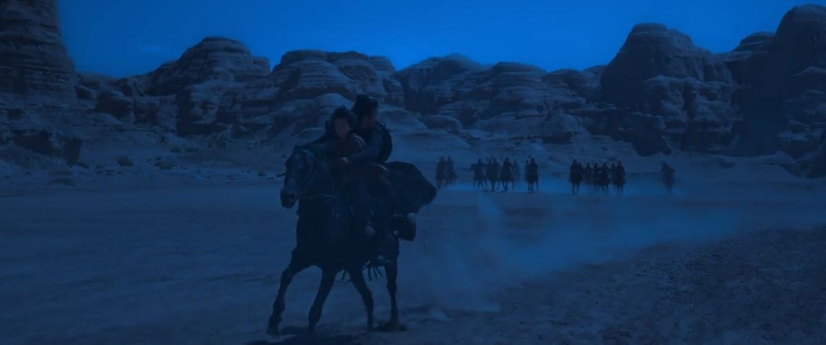 第一場是開場的大漠追逐戰,建立世界觀的同時立住刀馬這個人。十幾匹馬在黃沙裏狂奔,第一秒就告訴我們,這不是一般的武俠片。