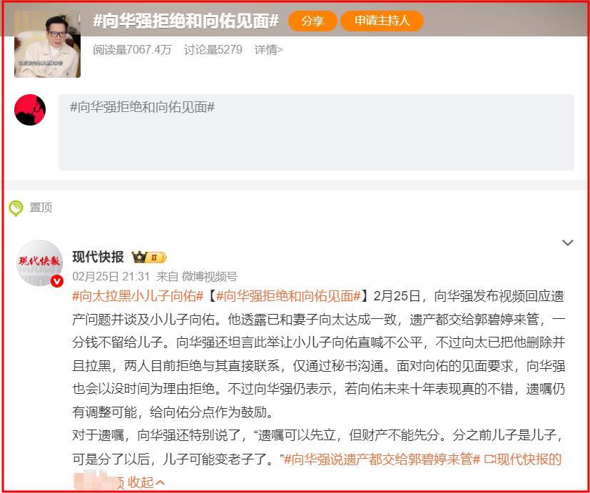 這一次,向佑受到關注,不是因爲他鬧出了什麼事情,而是因爲向華強公佈了遺產安排。