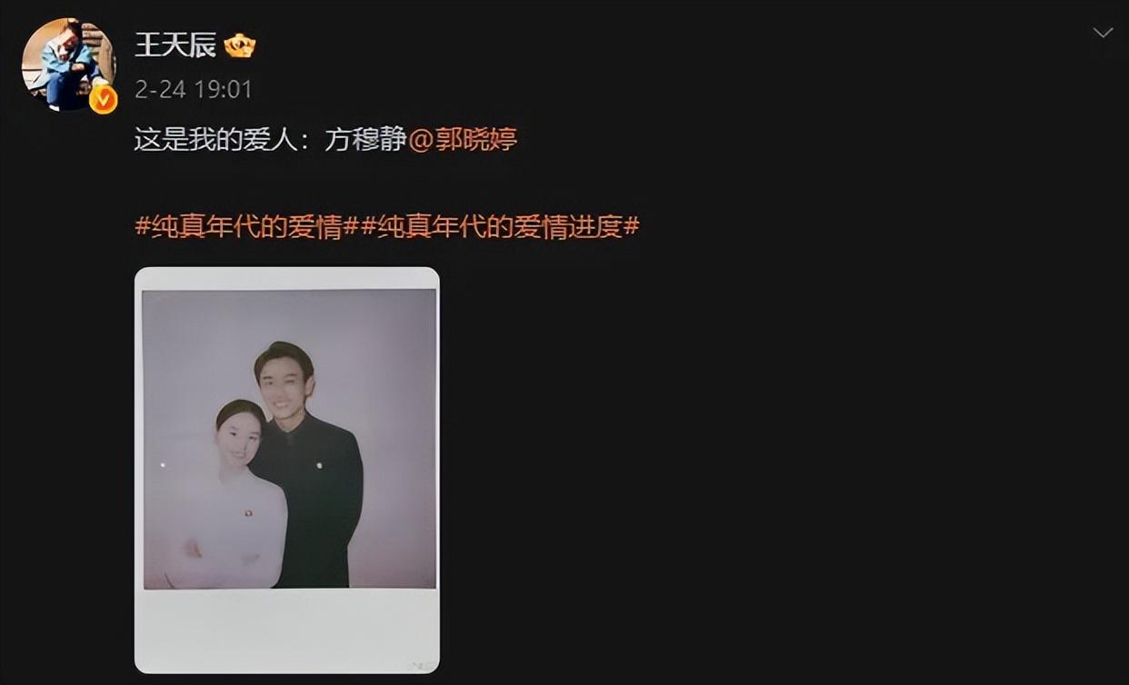 今天打開朋友圈,直接被郭曉婷和王天辰的官宣消息刷爆屏了。