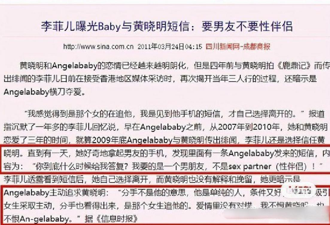 李菲兒和黃曉明分手後,曾直言她和黃曉明談戀愛時,無意中看到了楊穎發給黃曉明的信息。
