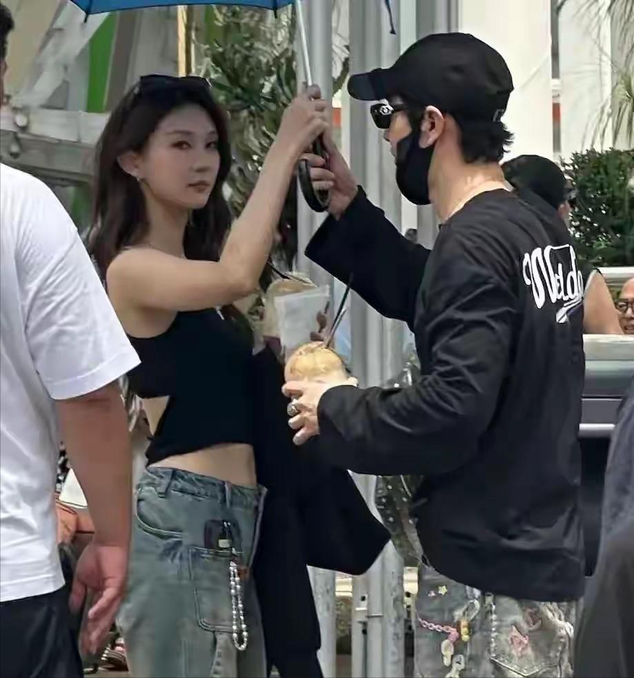 黃曉明會陪女方買飲料,會給女方撐傘,甚至在走路同行的過程中,兩人有肢體接觸。