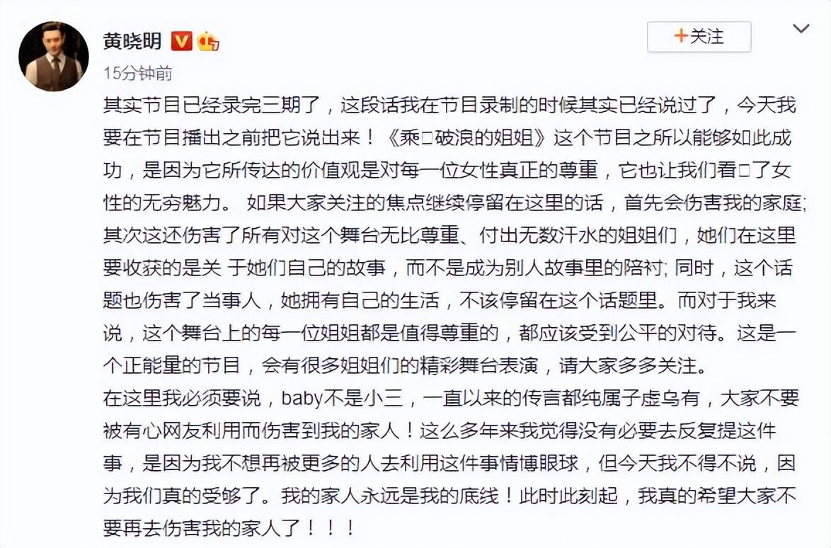 他發文說:baby不是小三,一直以來的傳言都純屬子虛烏有,大家不要被有心網友利用而傷害到我的家人!我的家人永遠是我的底線!