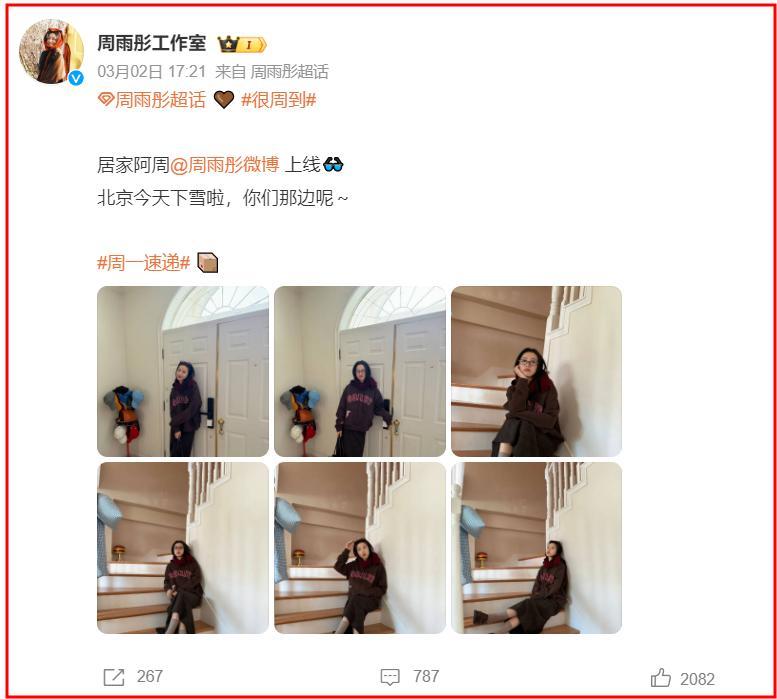 隨着3月2日傍晚,周雨彤工作室曬出周雨彤在北京居家的照片,粉絲們才徹底放心。