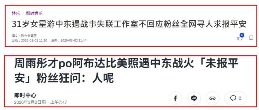 3月2日,周雨彤的安危引發全網關注,港媒甚至直接報道稱她已在中東失聯。