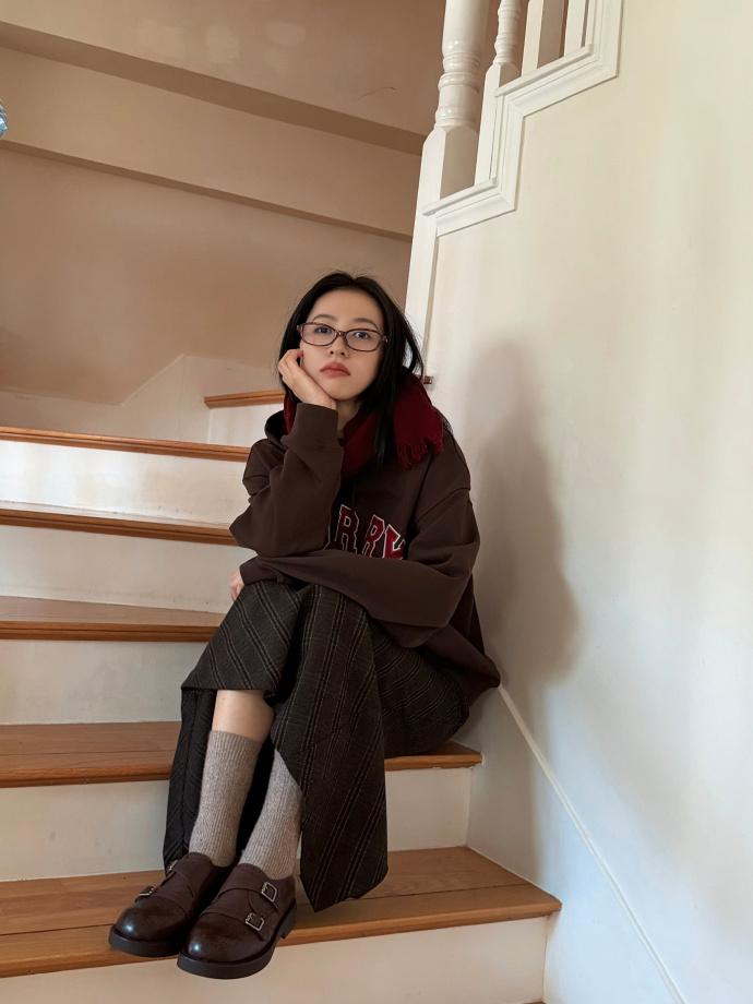 與文案搭配的是一組周雨彤的居家圖,從這組圖片中可以看到,周雨彤戴着眼鏡和圍巾,穿着深褐色上衣,享受着居家生活。