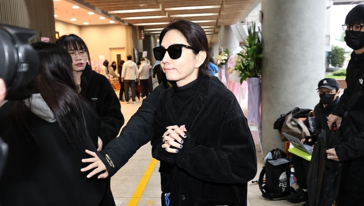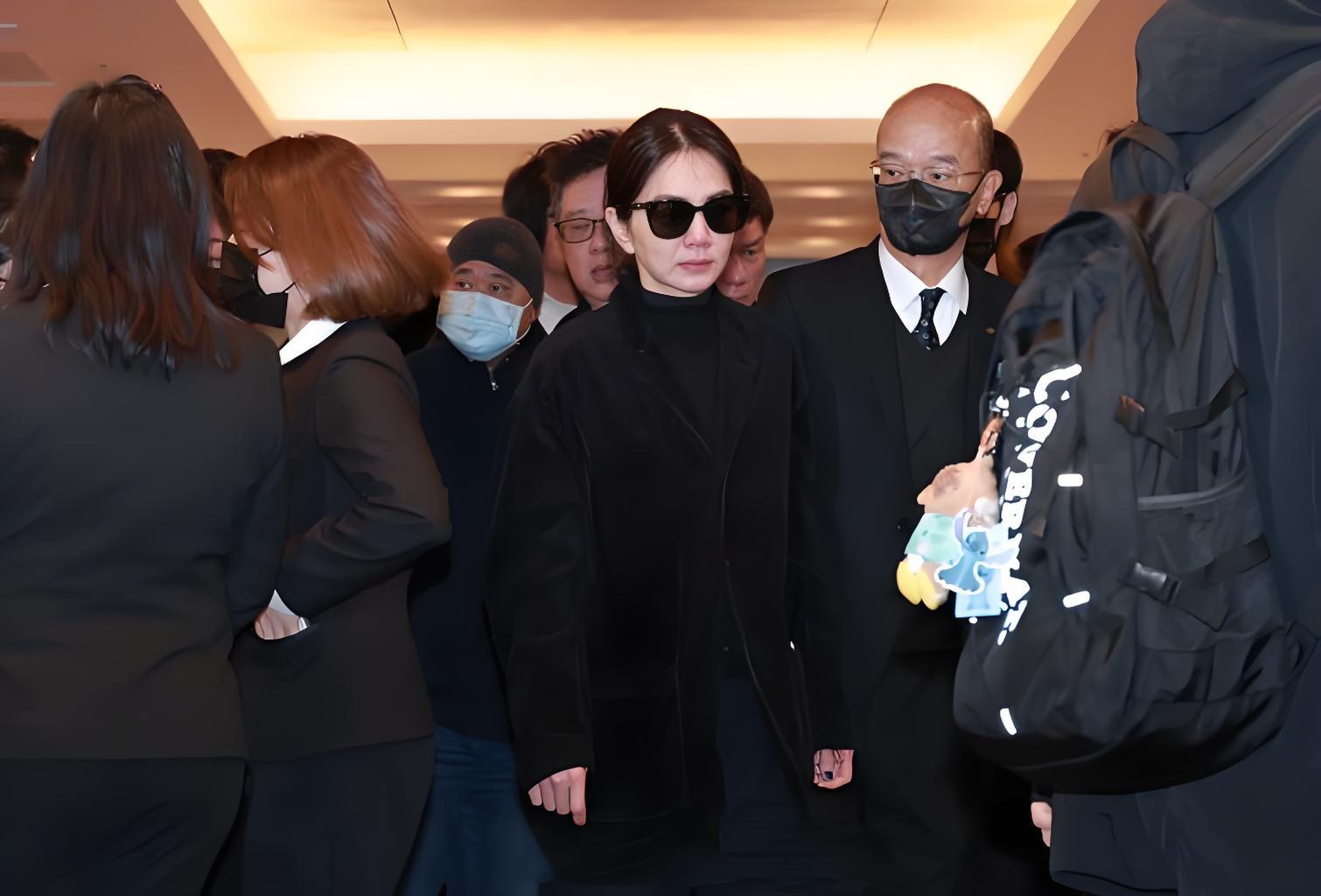 她戴着口罩,穿着一身黑衣在袁惟仁的告別儀式上現身了。