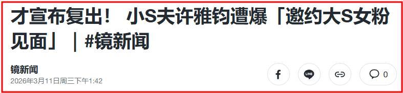 3月11日,臺媒突然爆料稱在大S去世後,許雅鈞竟然用大S的出殯照“約妹”。