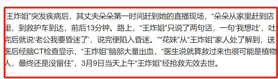 如今,媒體已經披露了王炸姐在直播中斷後的情況。