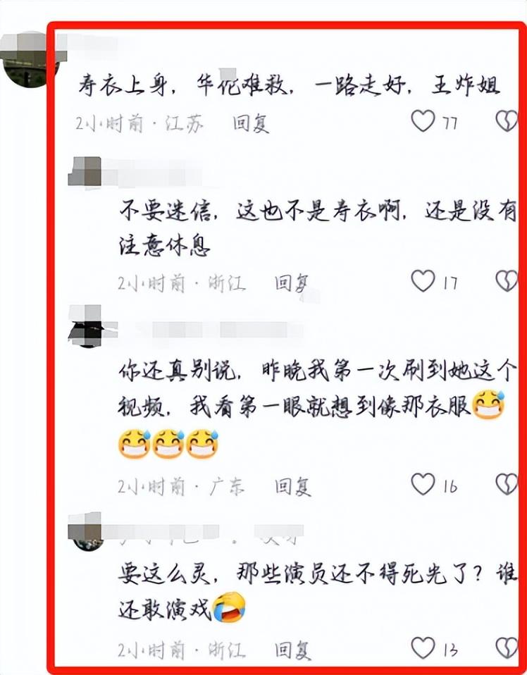 有些網友竟然將王炸姐的離世往玄學上引,說她離世是因爲她直播時穿的衣服像壽衣,不吉利。