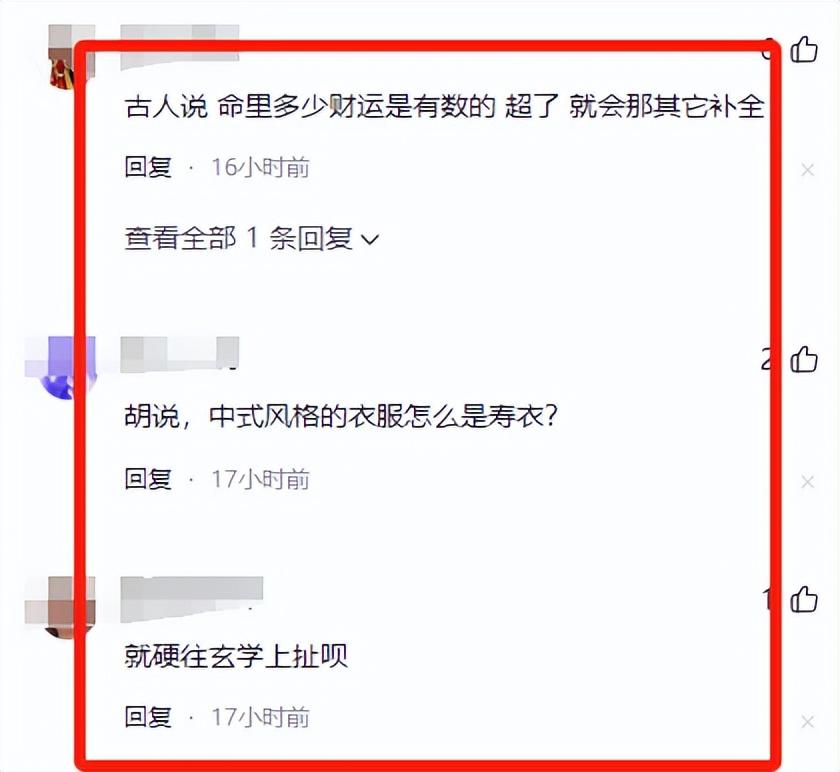 有些網友竟然將王炸姐的離世往玄學上引,說她離世是因爲她直播時穿的衣服像壽衣,不吉利。