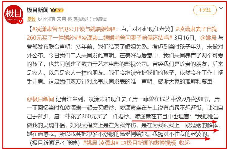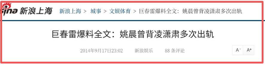 彼時,凌瀟肅的好友巨春雷髮長文爆料姚晨婚前婚後曾多次出軌。