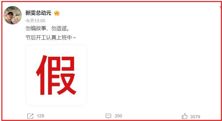 侯雯元方面相關賬號發文:勿編故事,勿造謠。節後開工認真上班中~