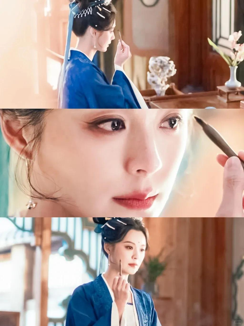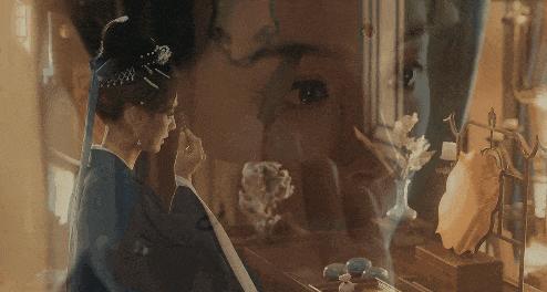 尤其是她對着鏡子梳妝的那個鏡頭,完美詮釋了“鬢雲欲度香腮雪”的意境,精緻的骨相臉佔滿整個屏幕,美得讓人忍不住屏住呼吸。
