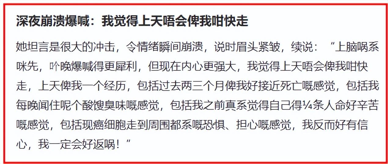 令人沒有想到的是,當她再次受到大衆關注時,竟然是因爲得知她患癌的消息。