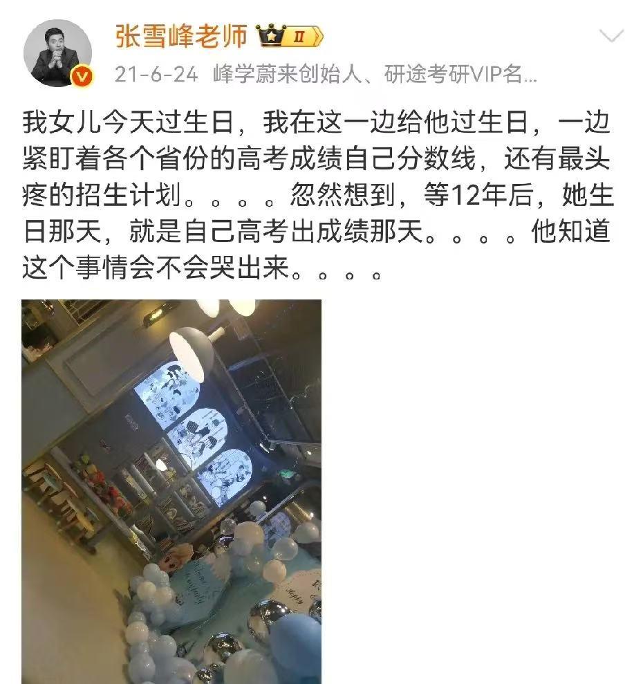 於是可以看到張雪峯說不管忙到再晚,他都要回家,就是爲了讓女兒早上醒來的時候能夠看到爸爸。