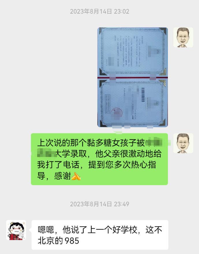 後來這個孩子考上了北京985,現在已經在500強公司實習了。