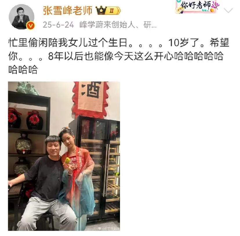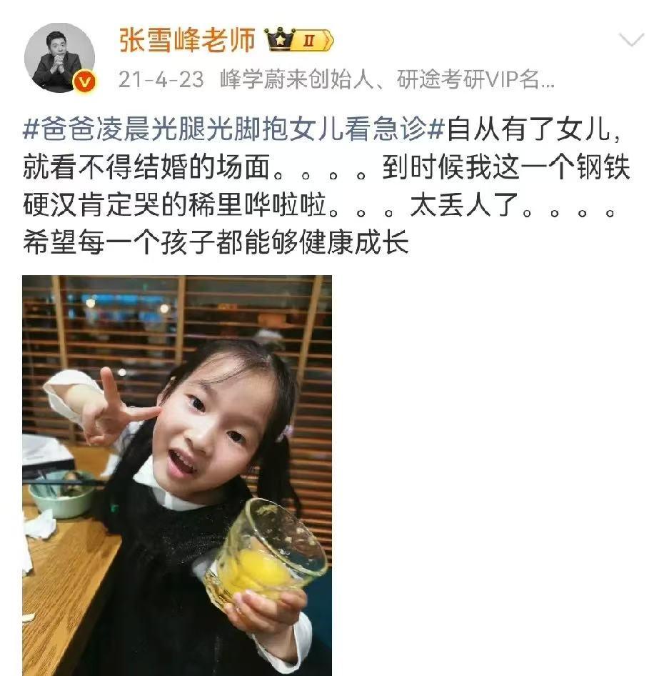 衆所周知,張雪峯是一個“女兒奴”,他對女兒寵愛得不得了。