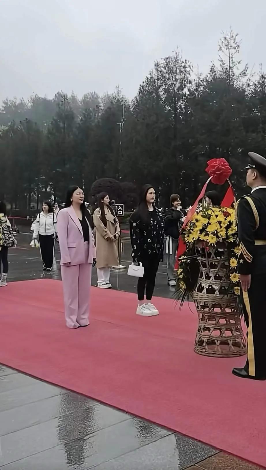 從網友曝光的視頻中可以看到,在清明節來臨之前,李湘帶着女兒王詩齡前往湖南韶山敬獻花圈。