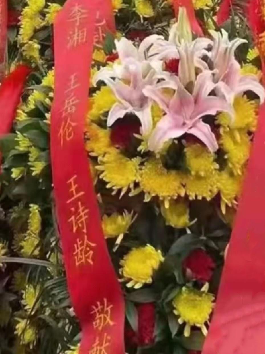 值得一提的是,從李湘王詩齡敬獻花圈的署名上可以看到,他們加上了王嶽倫的名字。