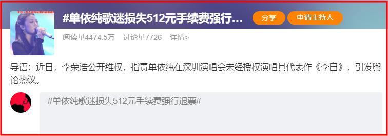 他控訴單依純在沒有得到他公司和中國著作權協會的授權下,在3月28日的深圳演唱會上演唱了歌曲《李白》,強行侵權。