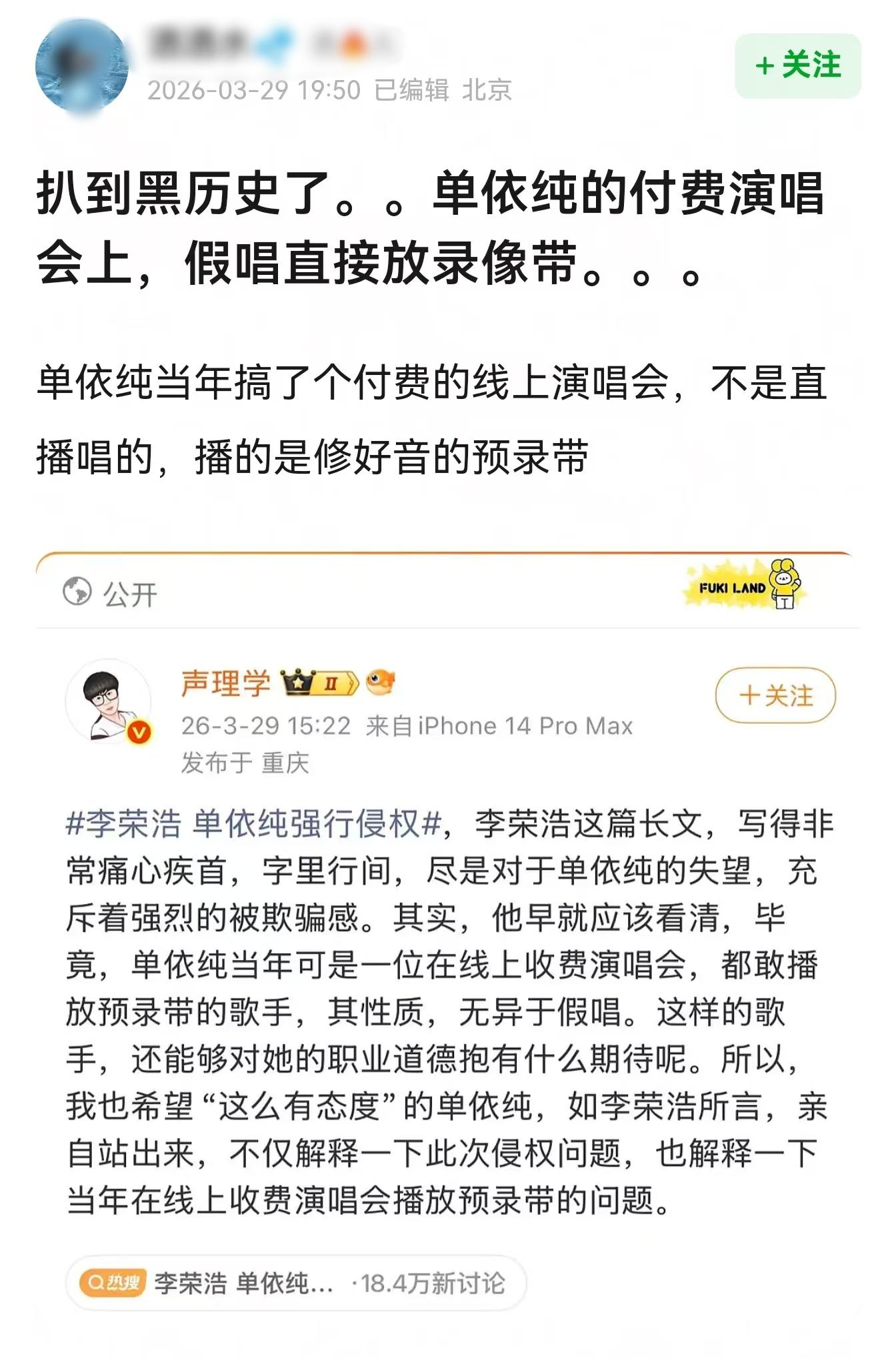 李榮浩的一紙發文將單依純送上了熱搜,網友熱議不斷。